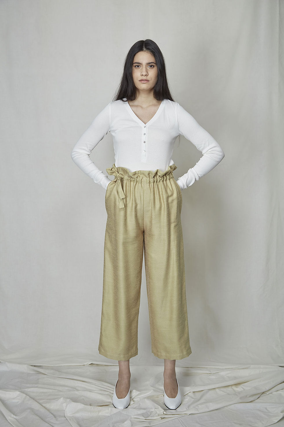 Parce que l’essence est un tout, nous avons aussi choisi de créer cette collection intégralement avec la Friperie Solidaire. Ainsi, les matières premières proviennent de leur stock. Nous leur achetons puis leur confions la découpe et l’assemblage des pièces. Une jolie construction, équilibrée, en tout point.